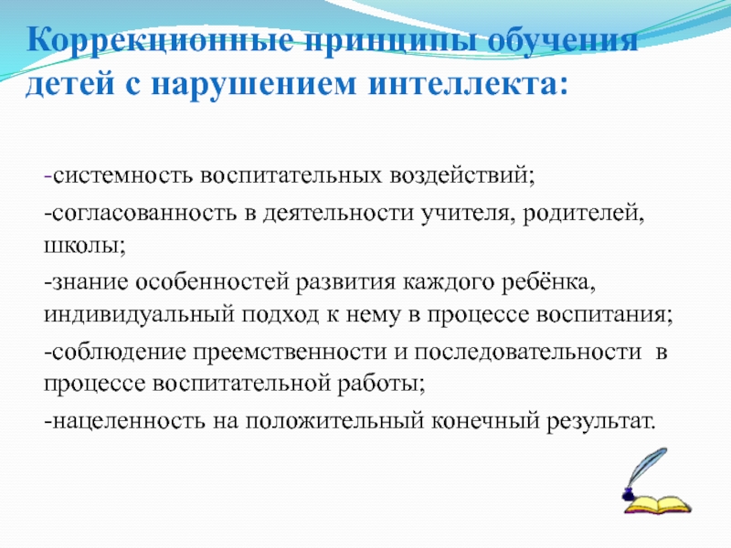 Коррекционные принципы обучения детей с нарушением интеллекта: