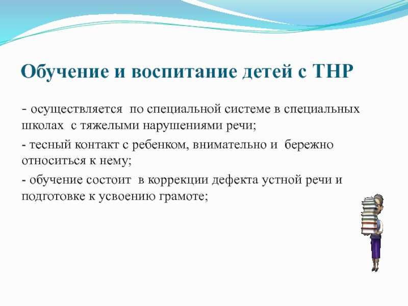 Слайд 12Обучение и воспитание детей с ТНР