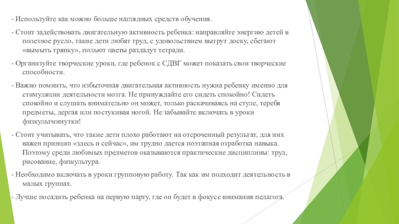 Что же необходимо обязательно учитывать педагогам и родителям при работе с детьми с СДВГ?