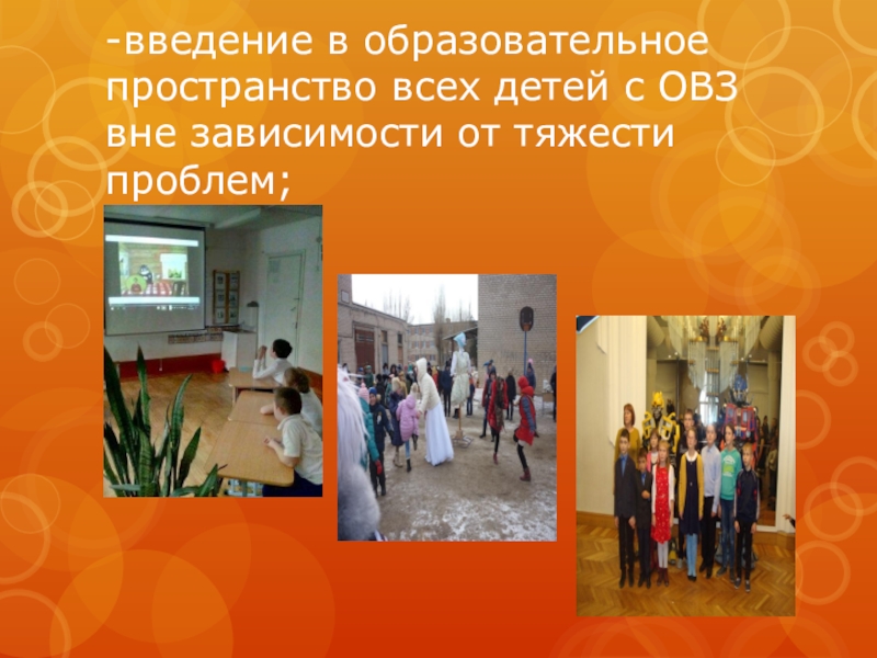Слайд 5-введение в образовательное пространство всех детей с ОВЗ вне зависимости от