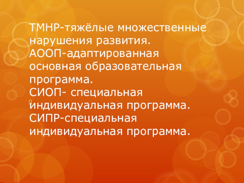 Слайд 3ТМНР-тяжёлые множественные нарушения развития. АООП-адаптированная основная образовательная программа.