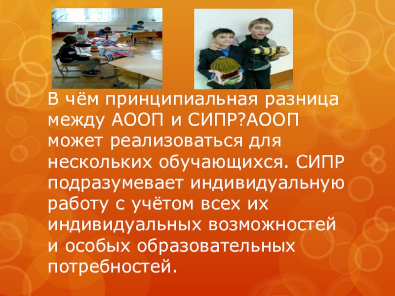 Слайд 8В чём принципиальная разница между АООП и СИПР?АООП может реализоваться для