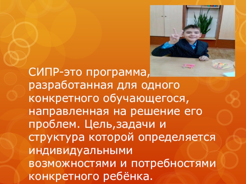 Слайд 7СИПР-это программа, разработанная для одного конкретного обучающегося, направленная на решение его