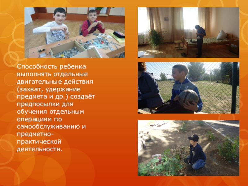 создаёт предпосылки для обучения отдельным операциям по самообслуживанию и предметно-практической деятельности.