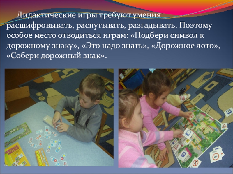 Слайд 7 Дидактические игры требуют умения расшифровывать, распутывать, разгадывать. Поэтому