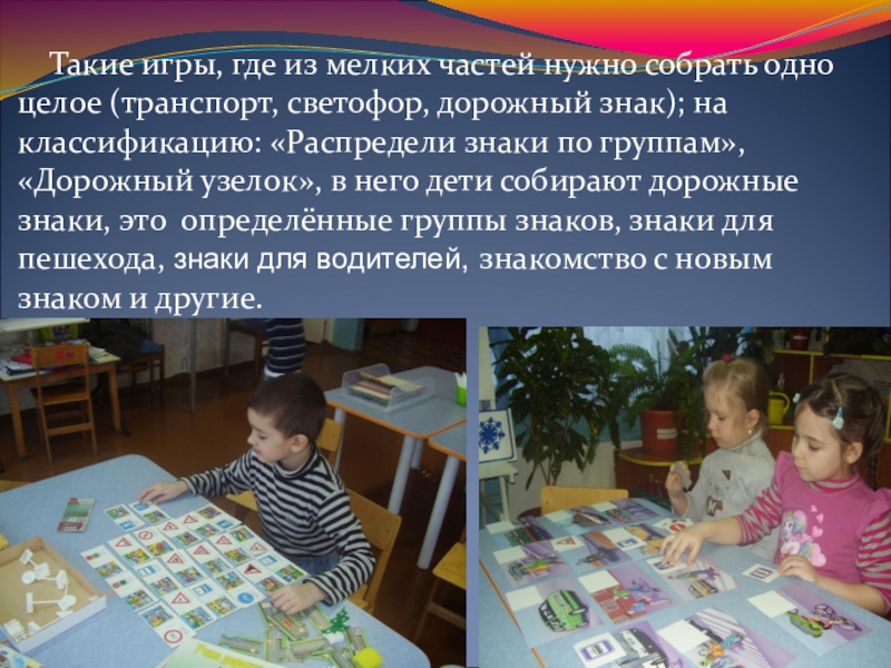 возрасте, игра – основной вид деятельности. Ребёнок хочет играть, он играет и познаёт окружающий мир. Игра даёт возможность ребёнку проявить себя. Обучать детей правилам дорожной