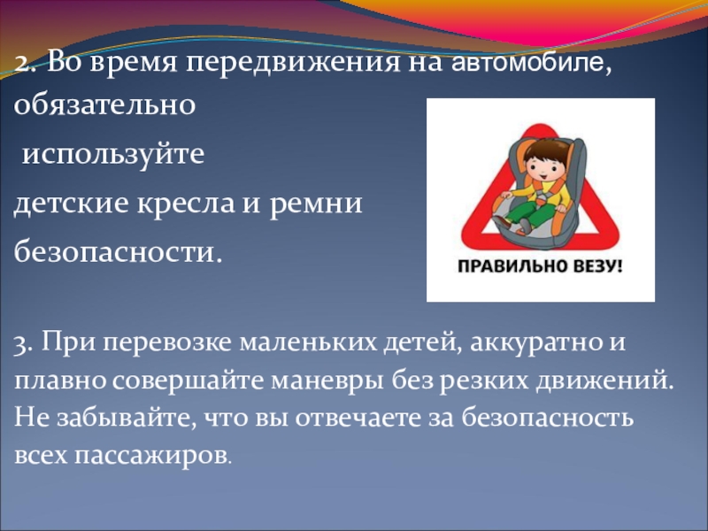 Слайд 202. Во время передвижения на автомобиле, обязательно