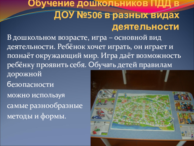 Слайд 3Обучение дошкольников ПДД в ДОУ №506 в разных видах деятельности