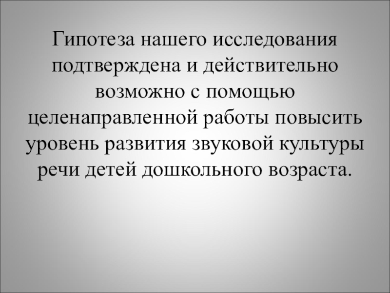 Слайд 17Гипотеза нашего исследования подтверждена и действительно возможно с помощью целенаправленной работы