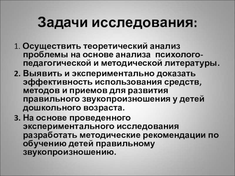2. Выявить и экспериментально доказать эффективность использования средств, методов и приемов для развития правильного звукопроизношения у детей дошкольного возраста.