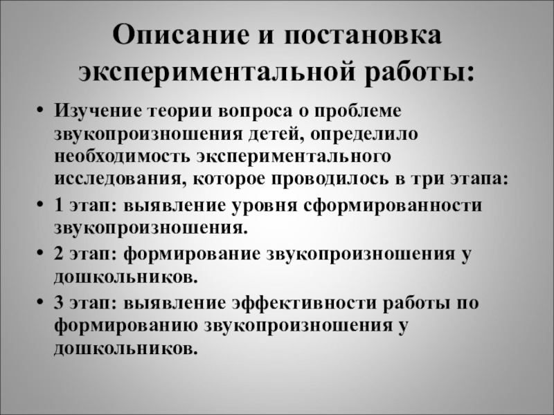 выявление, теоретическое обоснование, экспериментальная проверка данных по формированию звукопроизношения