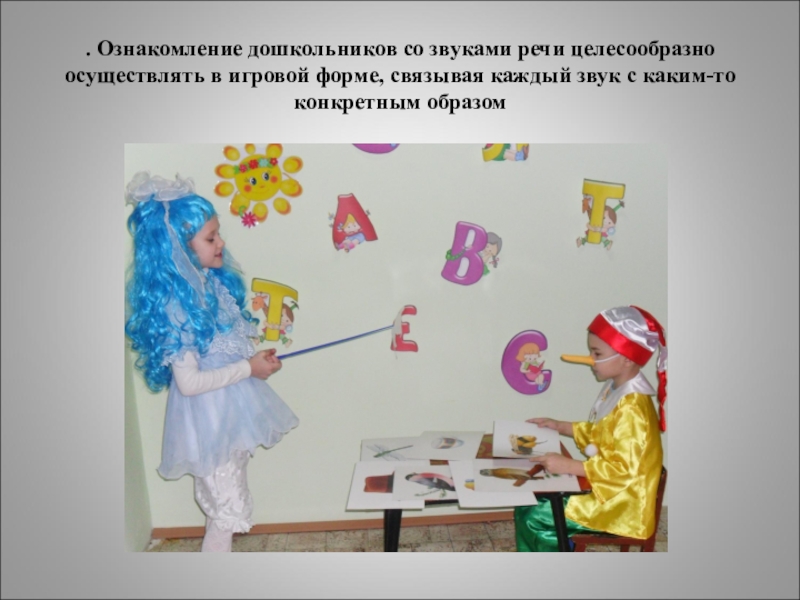 Слайд 14. Ознакомление дошкольников со звуками речи целесообразно осуществлять в игровой форме,