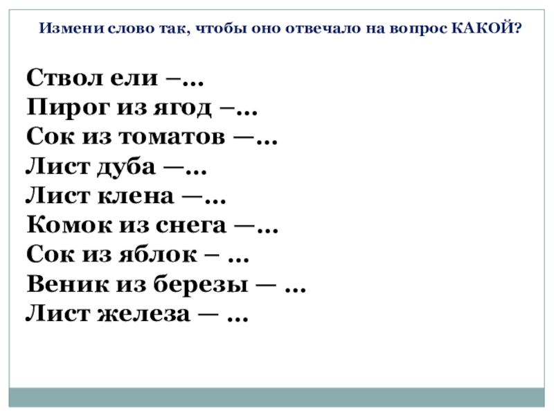Измени слово так, чтобы оно отвечало на вопрос КАКОЙ?