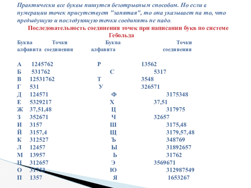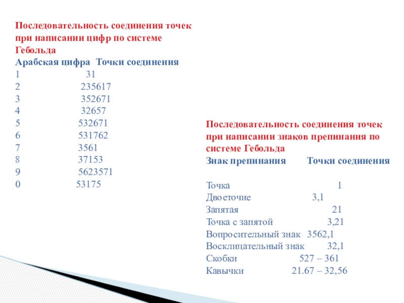 Последовательность соединения точек при написании цифр по системе Гебольда