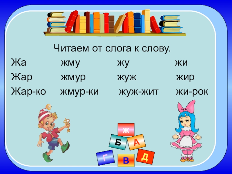 ВБГДжАЧитаем от слога к слову.Жа      жму