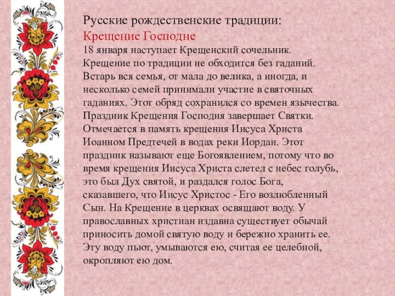 Русские рождественские традиции: Крещение Господне