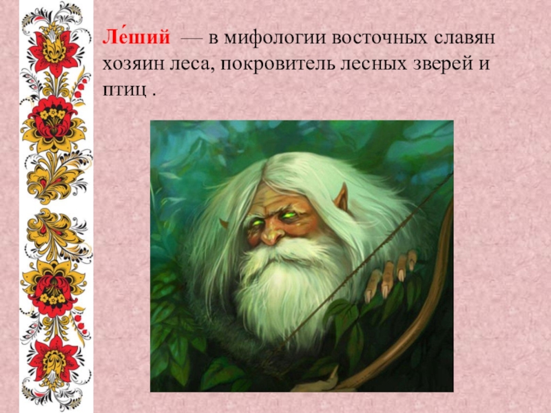 Ле́ший — в мифологии восточных славян хозяин леса, покровитель лесных зверей и птиц