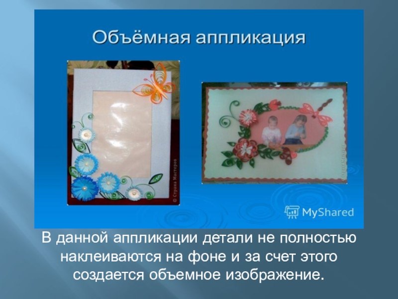 В данной аппликации детали не полностью наклеиваются на фоне и за