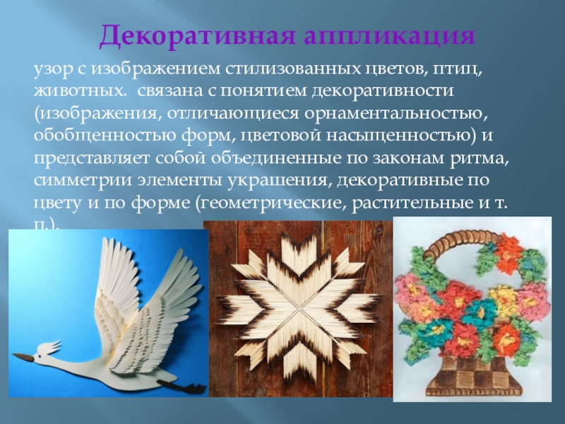 Слайд 12Декоративная аппликация