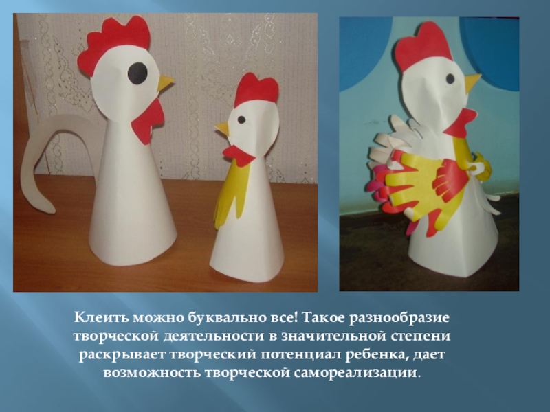 Слайд 14Клеить можно буквально все! Такое разнообразие творческой деятельности в значительной степени