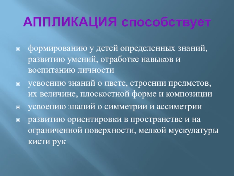 Слайд 7АППЛИКАЦИЯ способствует