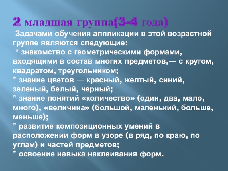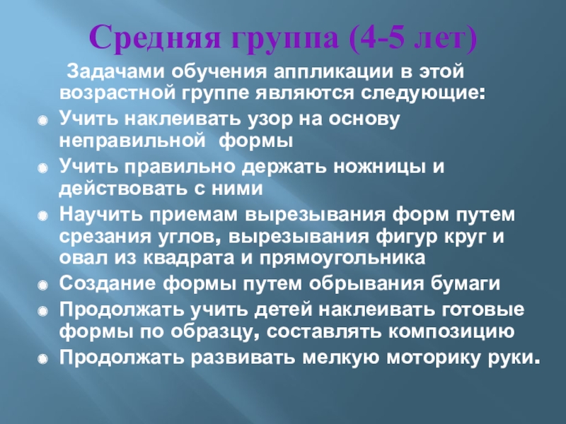Задачами обучения аппликации в этой