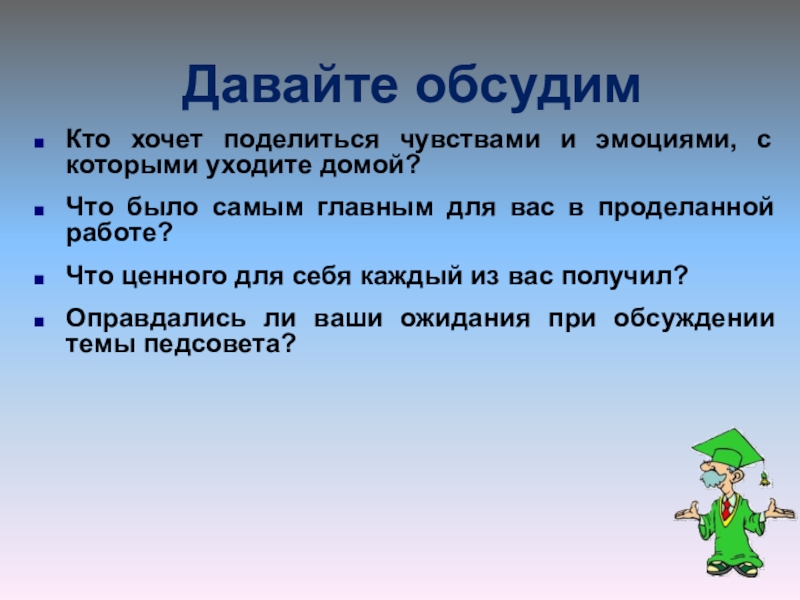 Оправдались ли ваши ожидания при обсуждении темы педсовета?
