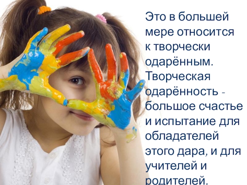 Слайд 10Это в большей мере относится к творчески одарённым. Творческая