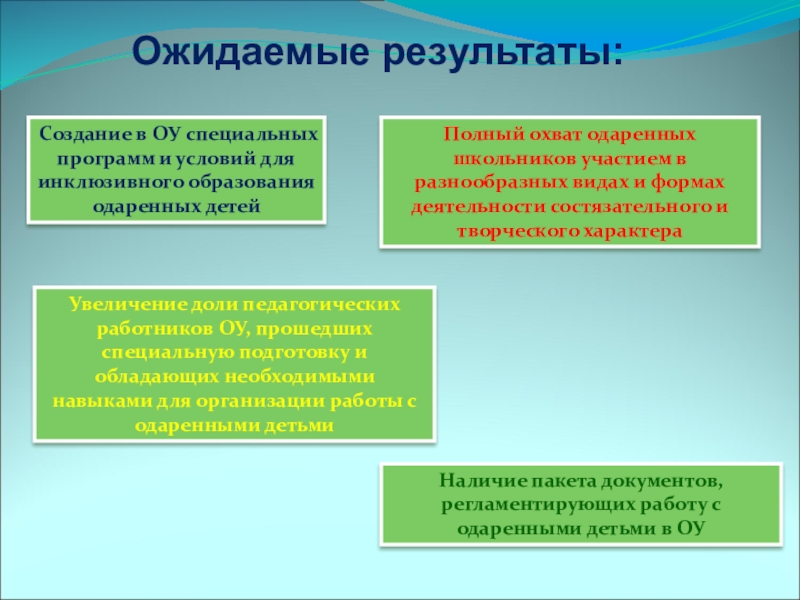 Увеличение доли педагогических работников ОУ, прошедших специальную подготовку и обладающих необходимыми навыками для организации работы с одаренными детьми