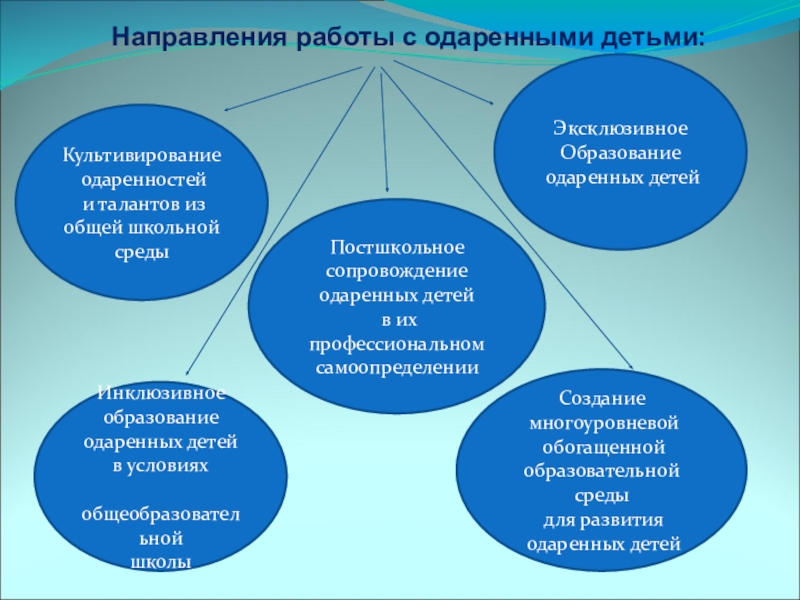 ориентаций в работе с одаренными детьми, можно отнести следующие:
