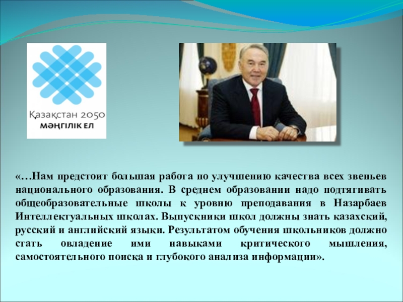 Слайд 2«…Нам предстоит большая работа по улучшению качества всех звеньев национального образования.