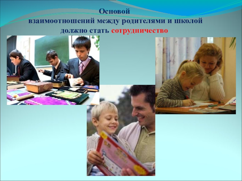 взаимоотношений между родителями и школой должно стать сотрудничество