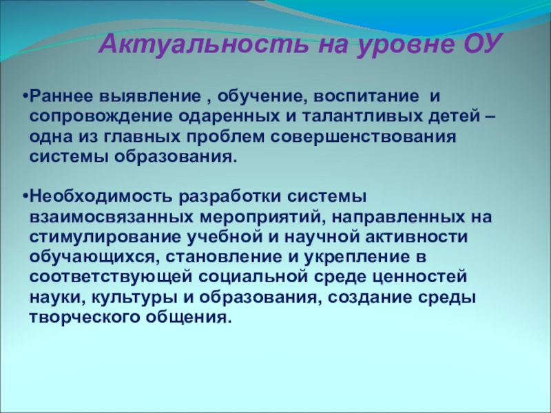 одаренных и талантливых детей – одна из главных проблем совершенствования системы образования.