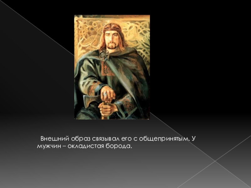 Слайд 4 Внешний образ связывал его с общепринятым. У мужчин – окладистая