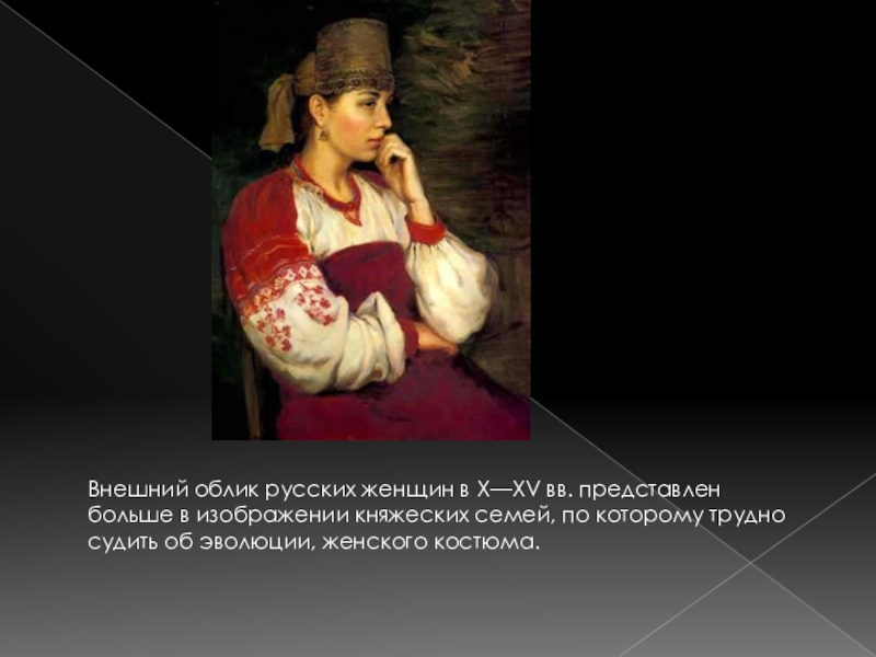 Внешний облик русских женщин в X—XV вв. представлен больше в изображении княжеских семей, по которому трудно судить