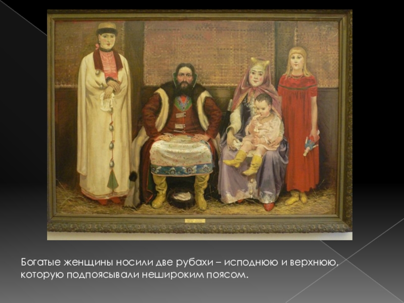 Слайд 6Богатые женщины носили две рубахи – исподнюю и верхнюю, которую подпоясывали