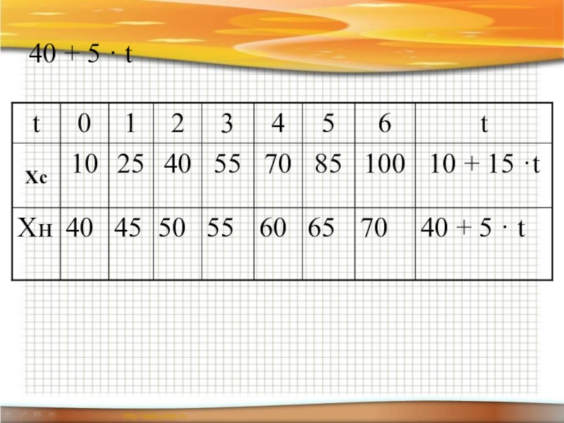 Слайд 940 + 5 · t