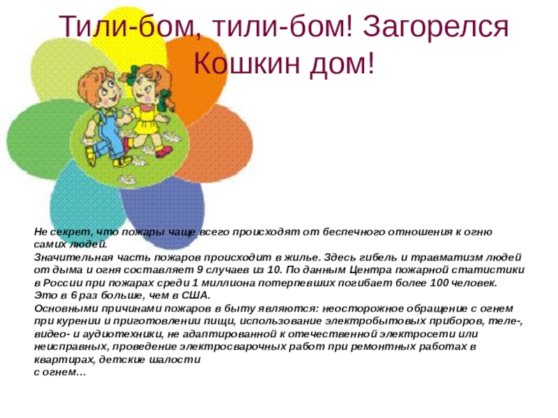 Слайд 12Тили-бом, тили-бом! Загорелся Кошкин дом!