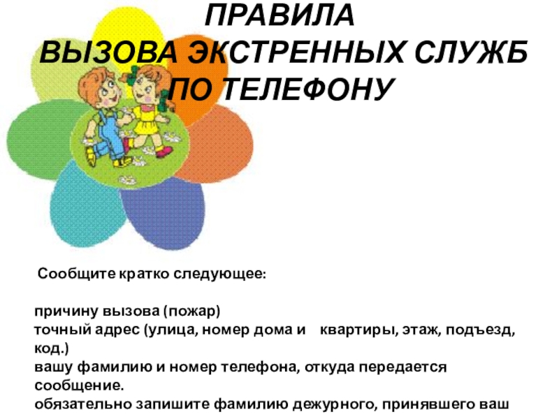 Слайд 26ПРАВИЛА ВЫЗОВА ЭКСТРЕННЫХ СЛУЖБ ПО ТЕЛЕФОНУ