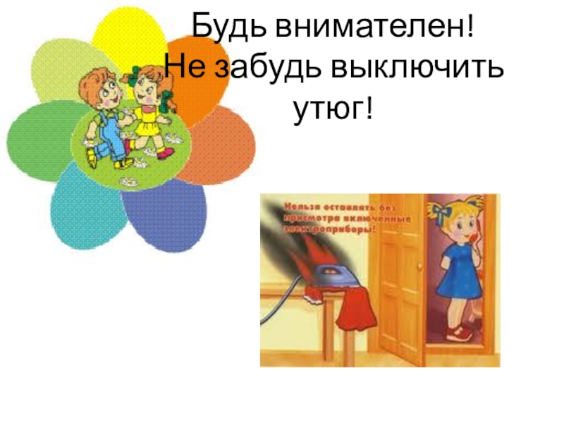 — Правило № 2. Не оставляй без присмотра включенные электроприборы, особенно утюги, обогреватели, телевизор, светильники и др. Уходя из дома, не забудь их выключить.