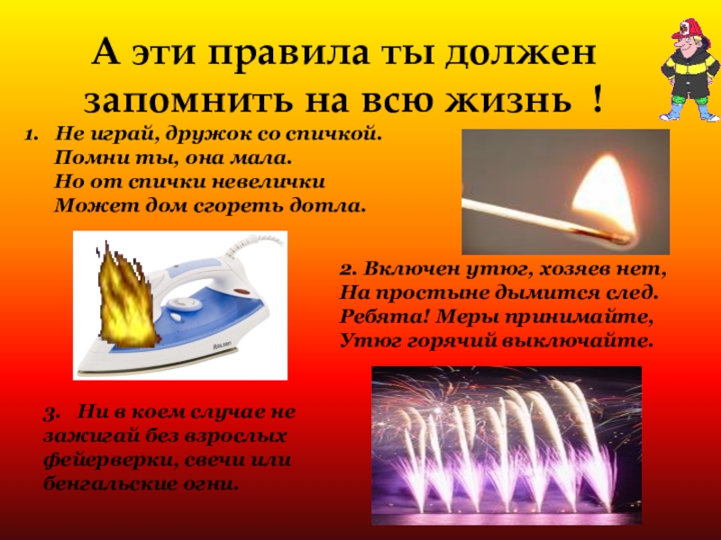 3. Ни в коем случае не зажигай без взрослых фейерверки, свечи или бенгальские огни.