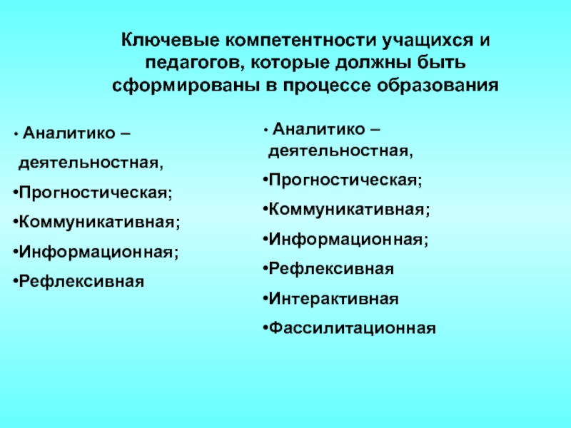 Слайд 5Ключевые компетентности учащихся и педагогов, которые должны быть сформированы в процессе