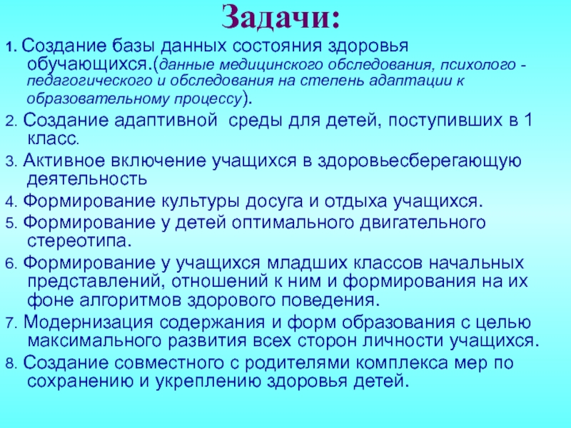 на сохранение здоровья ребенка на всех этапах его обучения и развития.