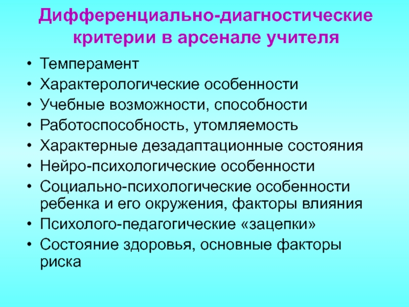 Слайд 31Дифференциально-диагностические критерии в арсенале учителя