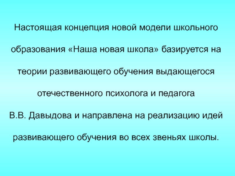 Слайд 13Концепция «Нашей новой школы» представляет собой комплекс пяти ведущих направлений модернизации