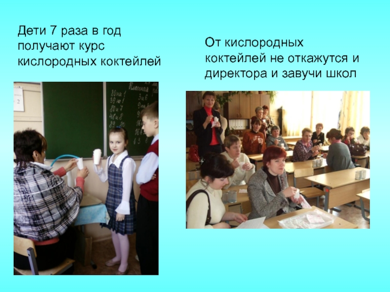 Слайд 26Дети 7 раза в год получают курс кислородных коктейлей