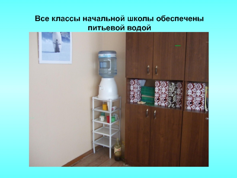 Слайд 24Все классы начальной школы обеспечены питьевой водой
