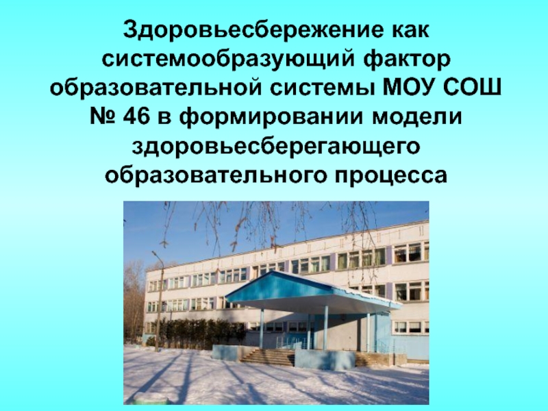 Слайд 14Здоровьесбережение как системообразующий фактор образовательной системы МОУ СОШ № 46 в