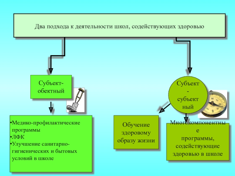 Слайд 21Два подхода к деятельности школ, содействующих здоровью