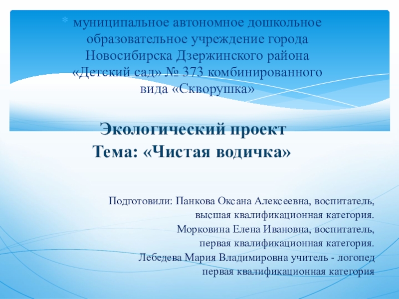 Подготовили: Панкова Оксана Алексеевна, воспитатель,